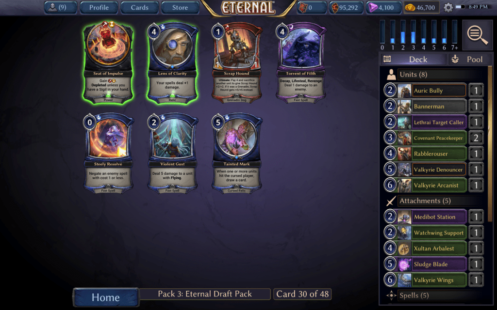 I would just like to be very clear that I am the furthest possible thing from a polished Limited Player, in fact, as you can determine from the title, the past month is the very 1st time I’ve made it to Masters in Draft. However, I’d like to think I’m at least a mediocre Eternal player, and as someone who understands how Eternal functions mechanically, I can hopefully help provide some insight and well-reasoned opinions about the Draft Format.